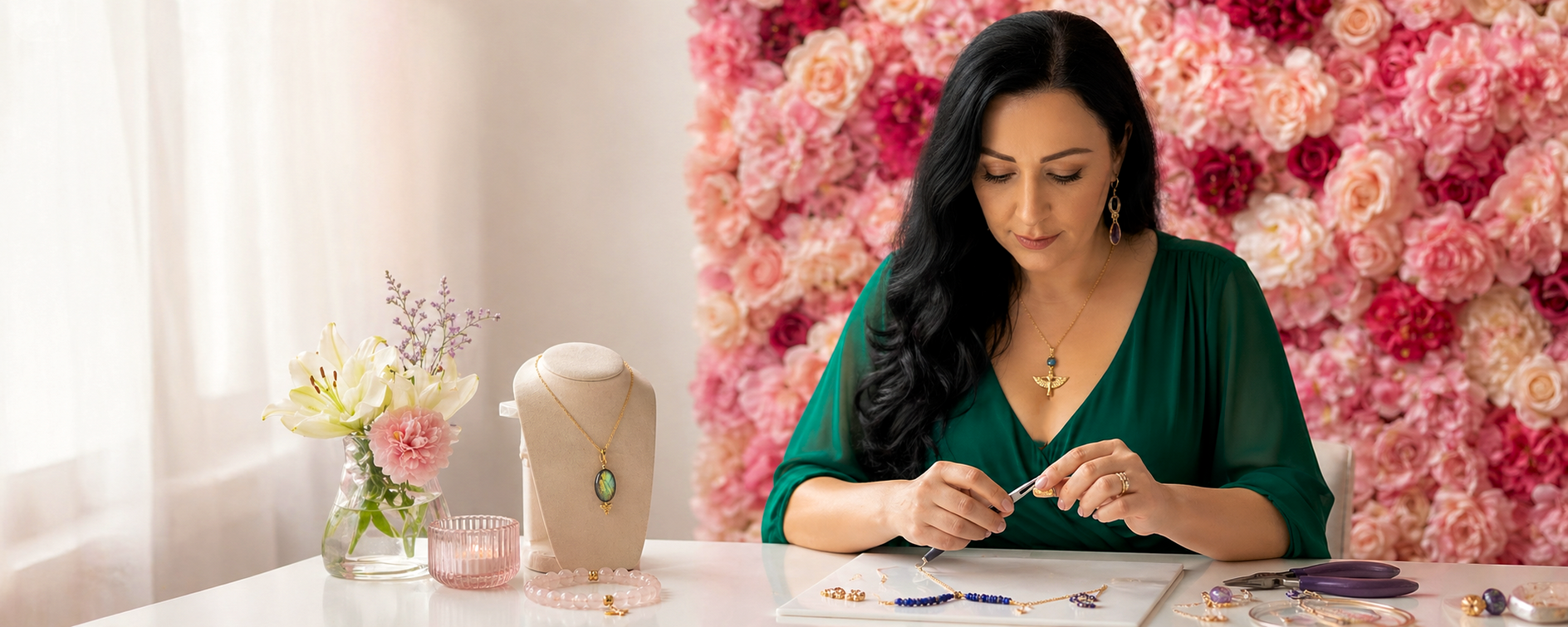 Je crée des bijoux d'intention pour révéler ta beauté et t’aider à te sentir belle, alignée et reconnectée à toi-même.