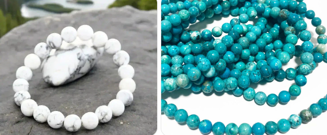 - Howlite teintée. Turquoise reconstituée. Turquoise stabilisée