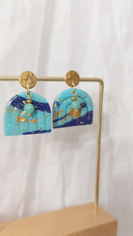 Boucles d’oreilles bleu et or, amazonite et polymère