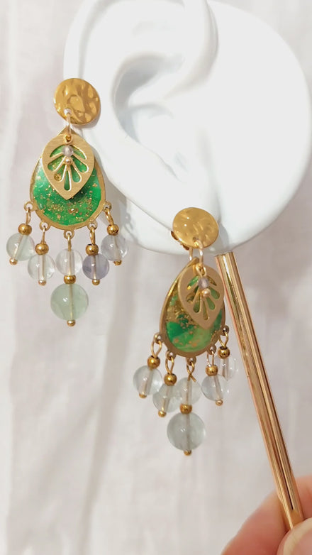 Boucles d’oreilles en Fluorite, Vert Doré