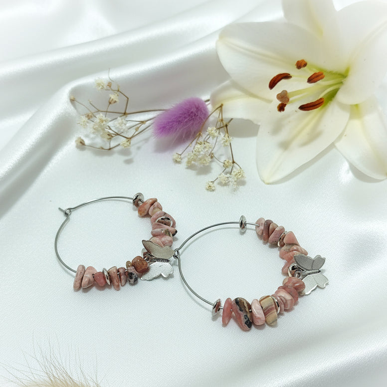 ✨Laisse-toi envoûter par ces boucles d’oreilles créées à la main dans mon atelier, alliant la douceur des pierres naturelles et la délicatesse de la rose éternelle.