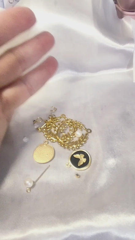 Boucles d'oreilles dorées papillon et pierre de lune ou perle d'eau douce