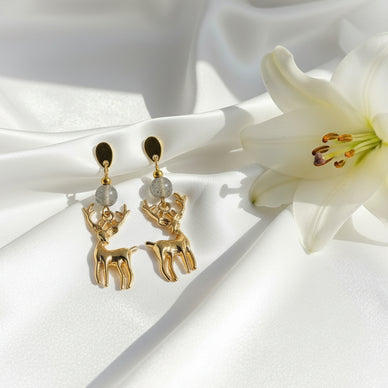✨Elles s’accompagnent d’un cerf doré, messagers des forets oubliés, et de perle de 6 mm en labradorite qui rayonne de sagesse, de passion et de renouveau.