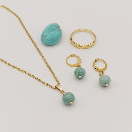🌙Il y a dans ce coffret un petit souffle de magie… Tout est assorti, tout est délicatement préparé : un collier en acier inoxydable orné d’une perle naturelle, les boucles d’oreilles coordonnées, une bague, et la pierre qui résonne avec ton énergie.