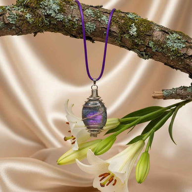 Une magnifique labradorite aux reflets intenses, dans une spirale, forme ce pendentif enchanté.