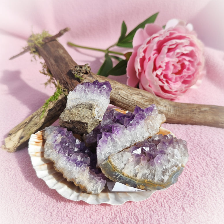 Petites améthystes roulées – 2 cm, brute de +3cm et pointes de 8cm