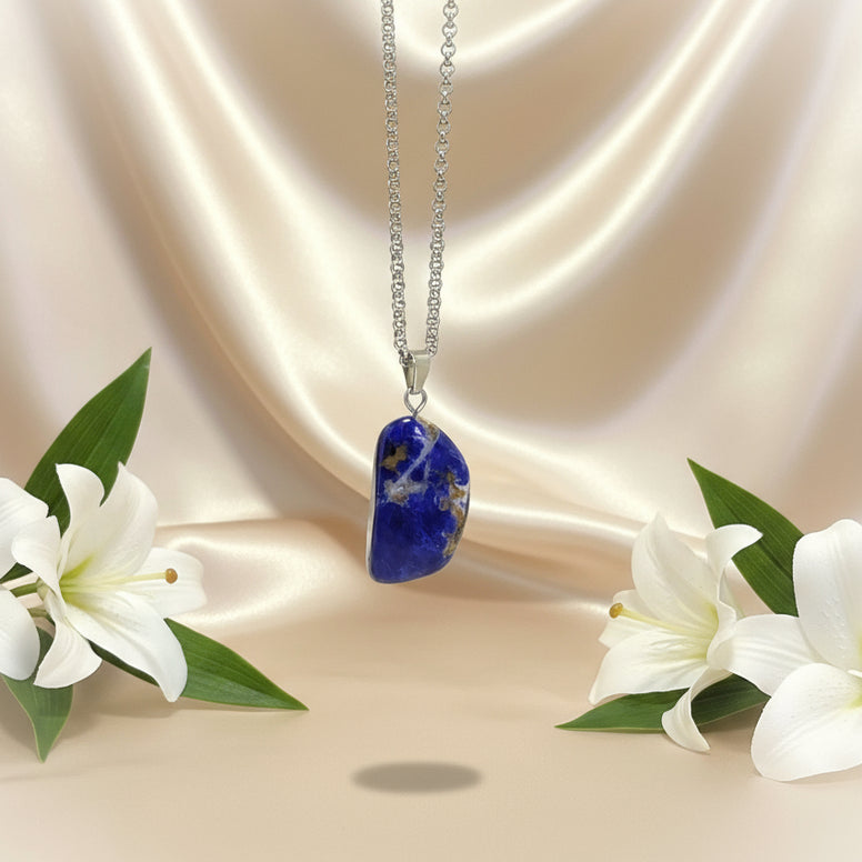 La sodalite t’enveloppe d’une douceur bleutée qui apaise immédiatement le mental. Son éclat minimaliste ouvre un espace de calme, de présence, d’écoute de toi-même… comme si l’air devenait plus léger autour de toi.