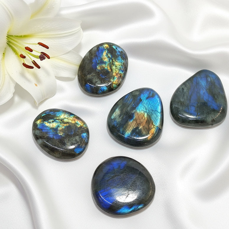 -Labradorite classique : aux reflets bleus et verts, vibrante et protectrice.