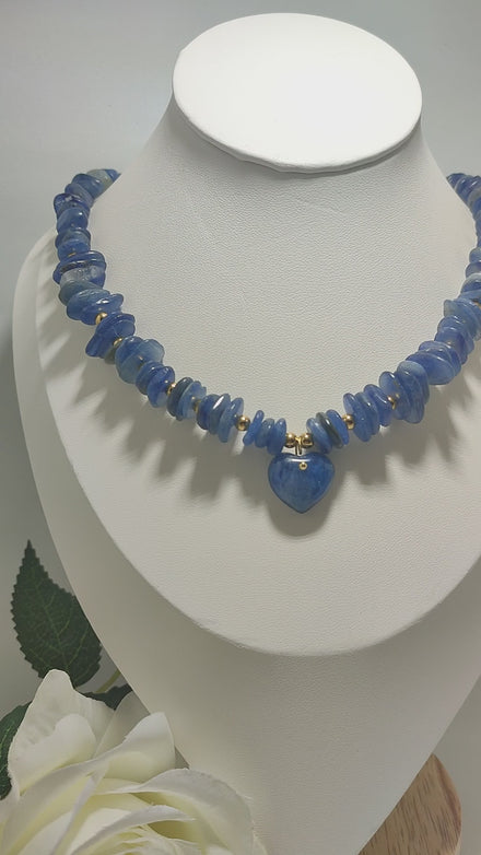 -accueil un magnifique pendentif coeur en pierre de Cyanite d'une qualité exceptionnelle 4A.
