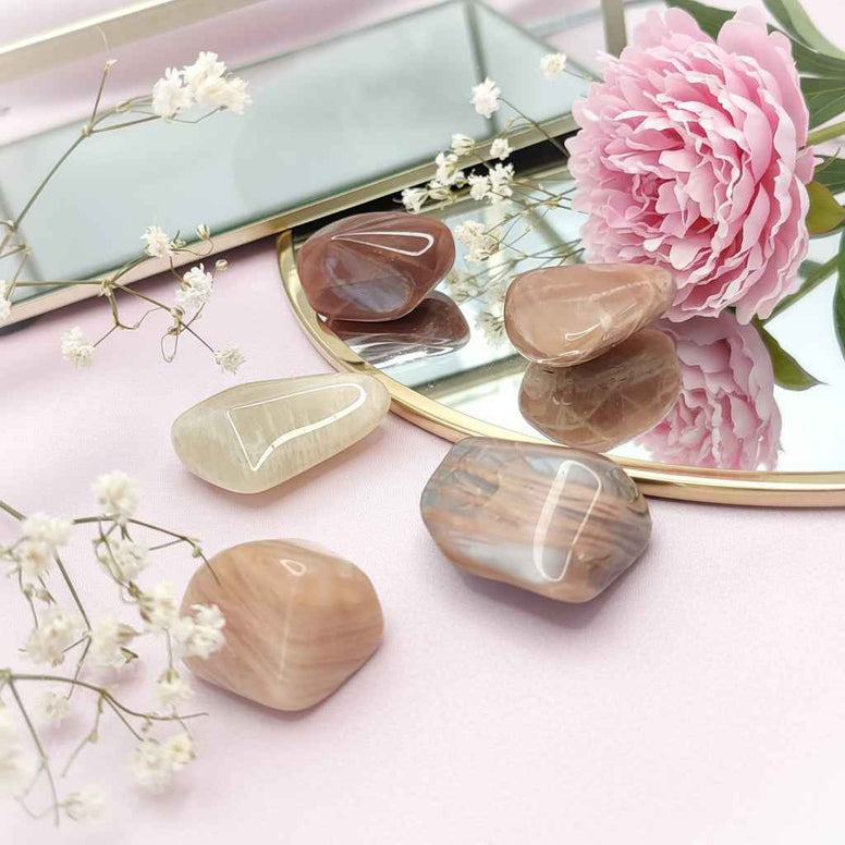 On adore cette pierre de féminité, sérénité et d'intuition, ces doux reflets beige nacrés, nous apporte leur douceur