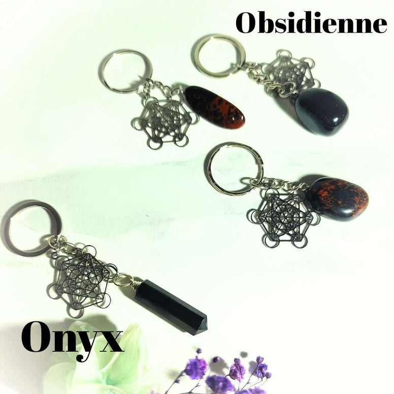 🌙On adore ce symbole Métatron en acier inoxydable attaché à ce porte-clés avec sa pierre au choix,