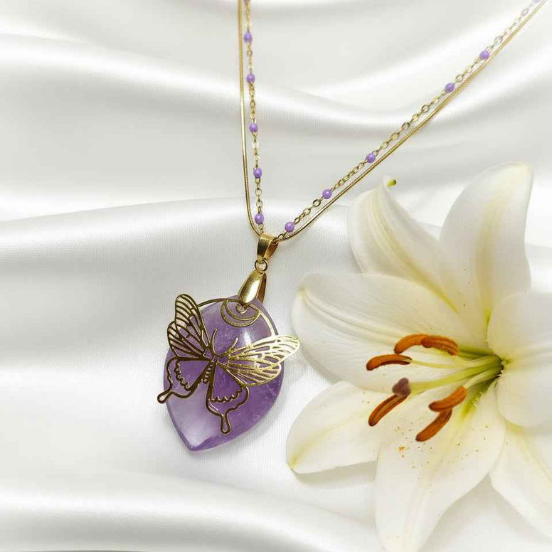 Succombe aux nuances violines de ce collier qui apporte sérénité, éveil notre spiritualité et ouvre notre intuition, avec cette pierre extra d'améthyste du Brésil, ouvre-toi à l'énergie cristalline.
