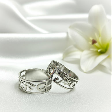 Cette bague en acier inoxydable incarne l’élégance intemporelle et la puissance des symboles sacrés égyptiens, elle met en lumière :