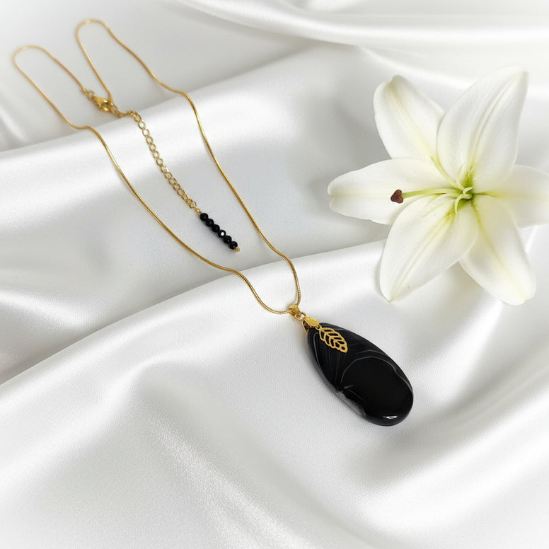 Ce pendentif délicat en onyx noire, est réputé pour apaiser les troubles de l'équilibre et les acouphènes qui perturbent ton quotidien.