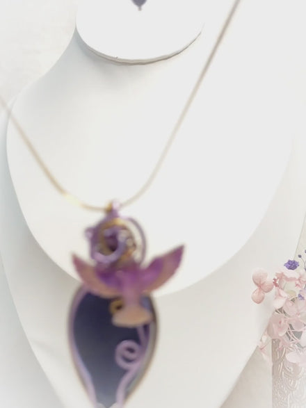-Au centre de cette création magique : une pierre de lapis-lazuli extra, subtilement enveloppée de fil métallique doré et violet, surmontée de son phénix sacré, gardien de ton feu intérieur.