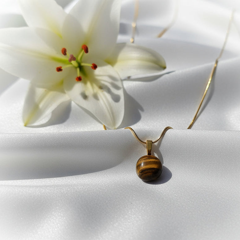 Collier et Pendentif en oeil de tigre doré, Au choix
