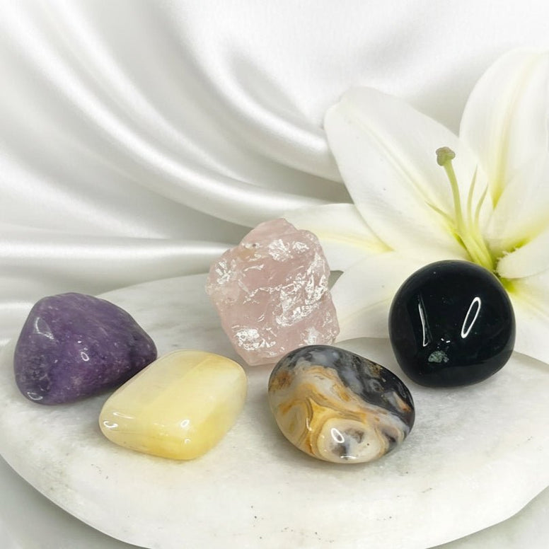 Les pierres absorbent les énergies autour d’elles. Pour qu’elles continuent à rayonner et à t’offrir leurs vertus, elles doivent être régulièrement nettoyées 🌬️✨.
