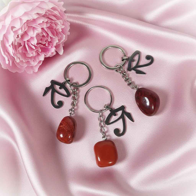 Porte-clés Horus protecteur, gourde wulu en Jaspe Rouge – Courage & Protection